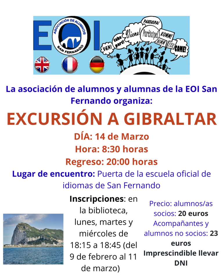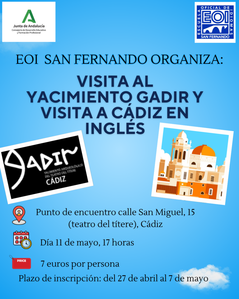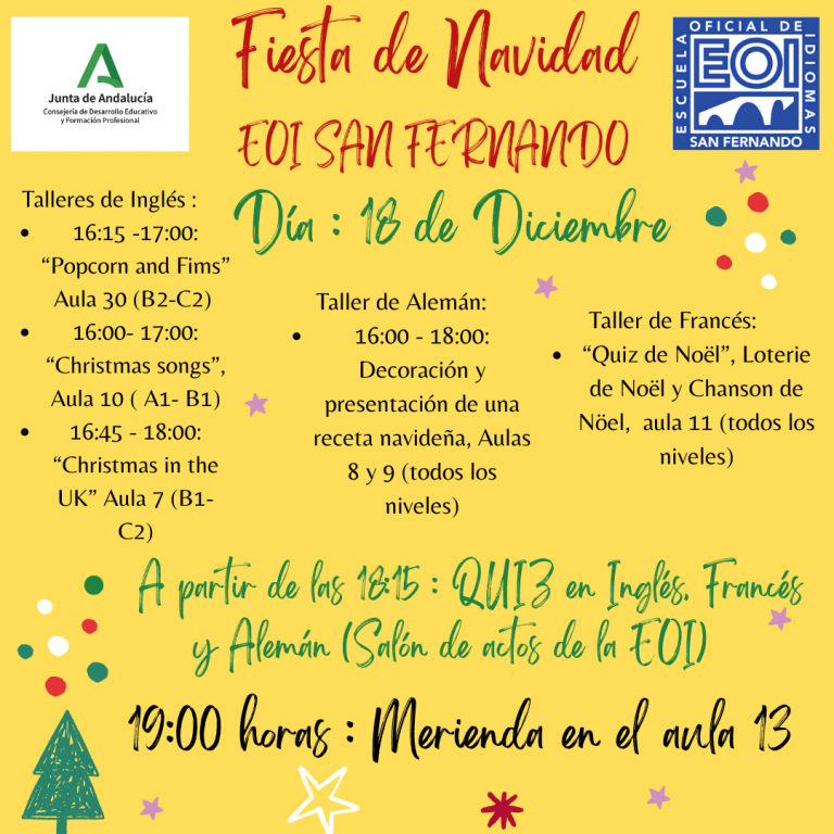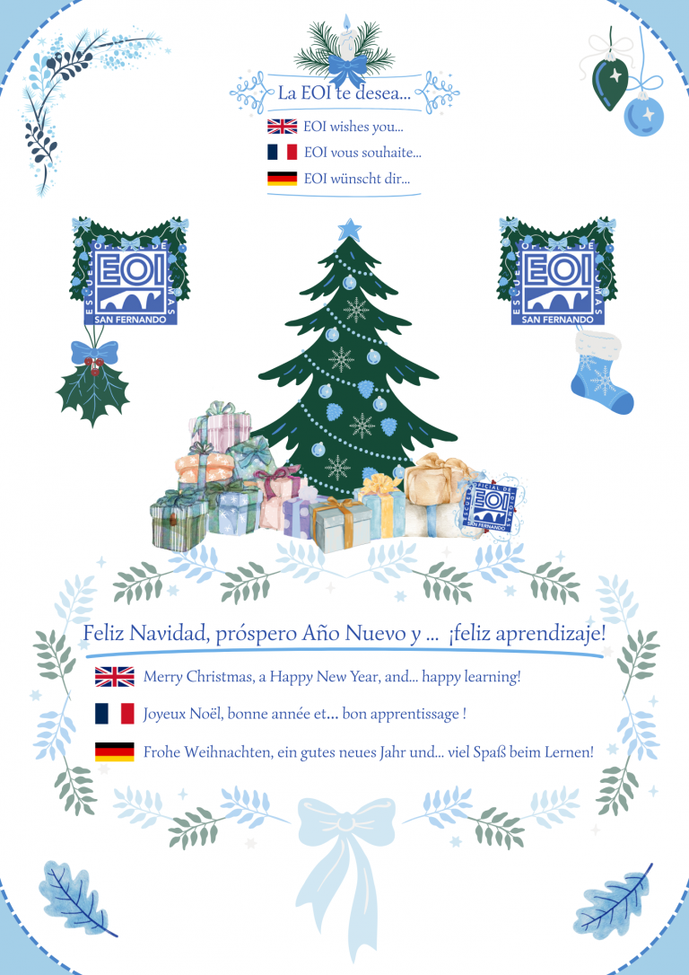 En EOI San Fernando se imparten los idiomas alemán, francés e inglés en modalidad presencial y semipresencial. Asimismo, se imparten Cursos de Actualización Lingüística (C.A.L.) de inglés para docentes dentro del Plan de Fomento de Plurilingüismo.